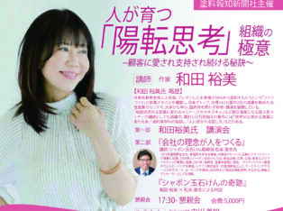 作家、和田裕美氏登壇 塗料報知新聞社事業局は10月28日、第1部では和田裕美氏による「人が育つ『陽転思考』組織の極意」、第二部ではシャボン玉石けん取締役の松永康志氏による「会社の理念が人をつくる」と、和田氏×松永氏両名の … 続きを読む 10/28 塗料報知新聞社主催 〝秋文〟講演会 2部構成で人が育つ「組織づくり」