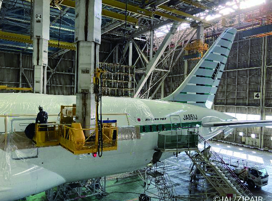 ZIPAIRは、2025年5月にカーボンニュートラリティに関する国際規格「ISO 14068‐1:2023」に準拠したカーボンニュートラリティの認証を取得し、CO2排出量削減を推進している。その一環として、今回のリブレット塗膜施工を実施した。