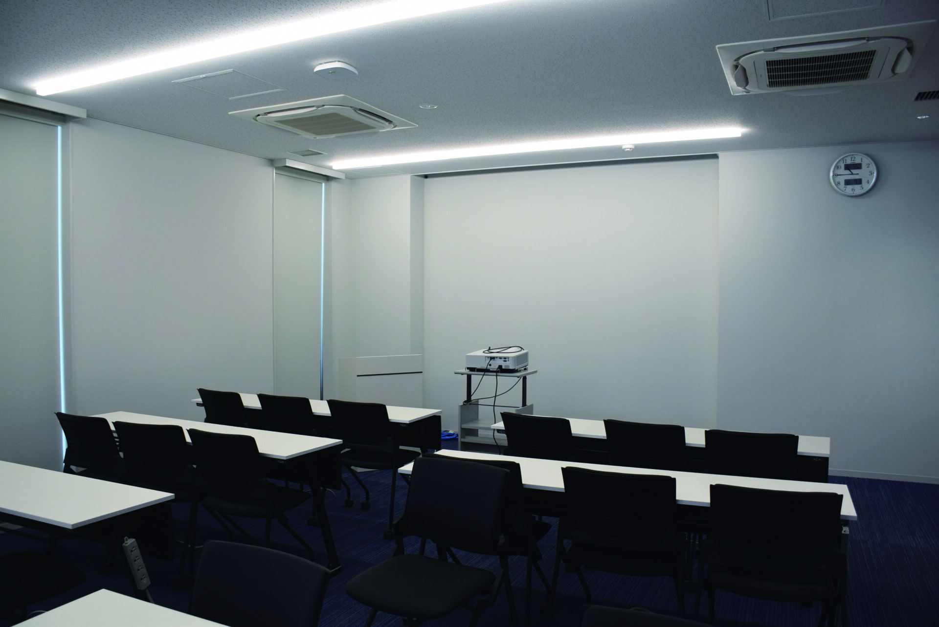 建物は、RC構造の2階建てで、本社事務棟やR&Dセンターとデザインを統一している。内装は化粧コンクリート仕上げで、1階中央部には開放的な吹き抜け構造を採用。2階から研修風景を見渡すことができる。2階には座学用の講義室と木材調のラウンジが設けられており、バルコニーも併設されている。受講者が快適に過ごせる空間設計がなされており、研修に集中できる環境が整えられている。設備面では、近年の水性塗料導入の流れを踏まえ、最新鋭の機器を導入した。施設1階は主に4部屋で構成されており、2基の塗装ブース、下地処理を行うプレパレーションブース、および調色室である。