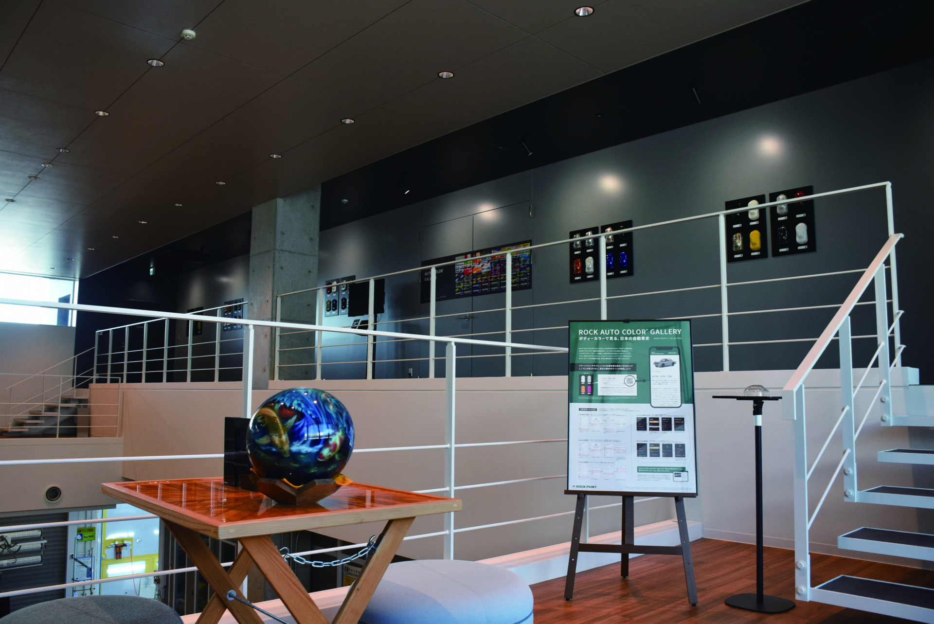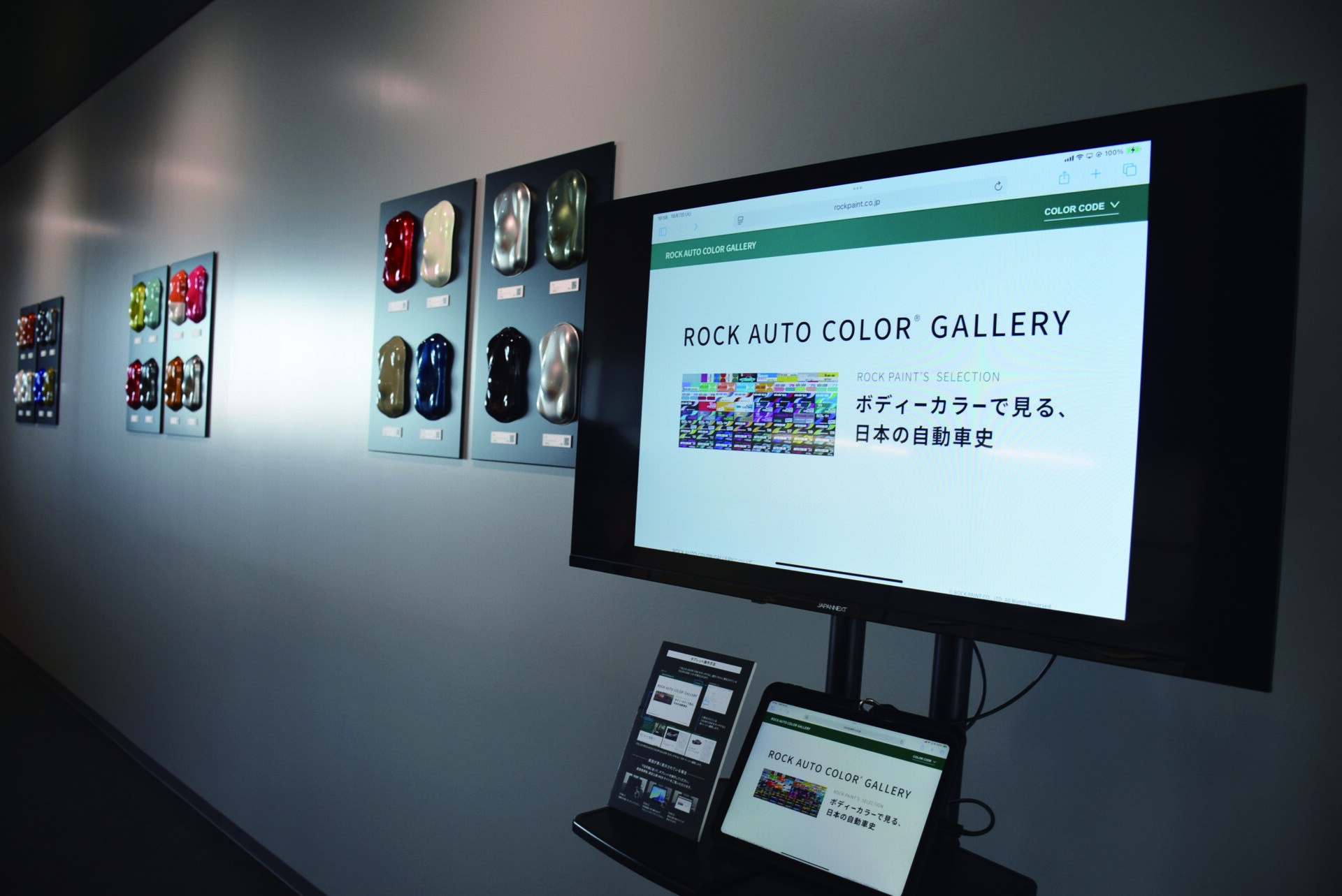 大阪研修センターでは、訪れることが「楽しく」なる一工夫もある。「ROCK AUTO COLOR GALLERY」は、1950年代半ばから現在までの自動車の塗色を、同社の視点で選定した「ボディーカラー」として展示している。展示パネルにはQRコードが設けられており、読み込むことで車種や塗色にまつわるトピックスやヒストリーを閲覧でき、特別感のある空間である。