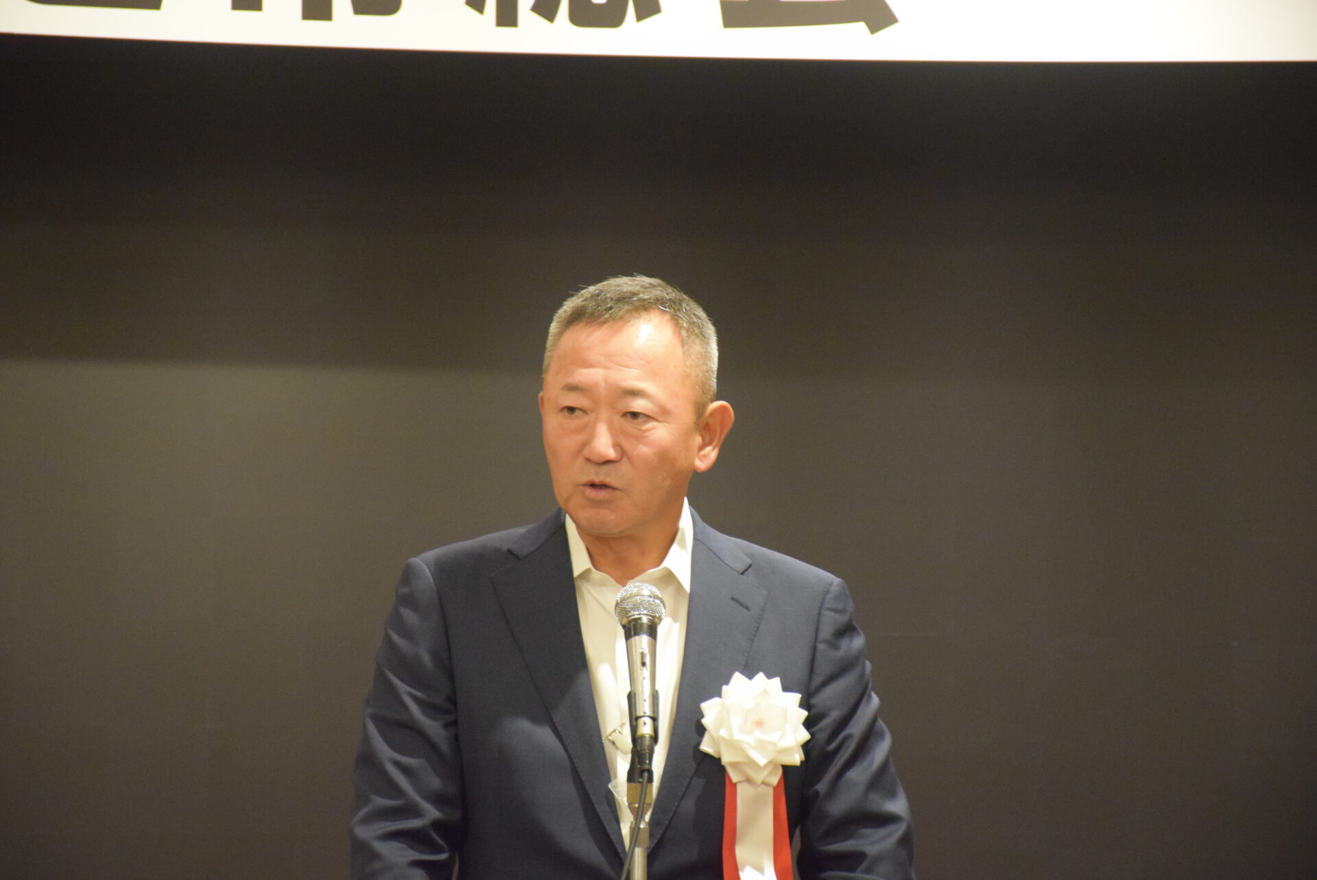 午後2時からの第50期通常総会では冒頭に髙𣘺会長=写真=が「諸先輩方の尽力もあり、50年という長きにわたり会を続けてくることができた。今後も皆様の力を借りながら、70年、80年、100年と続けていける会にしていきたい」と、同連合会が発足した昭和50年のエピソードを交えながらあいさつを述べた。