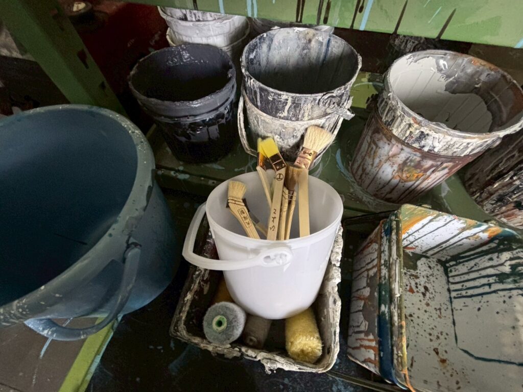 塗料缶には意匠が施されており、リアルなガレージの雰囲気を再現(写真提供:日本ペイント)