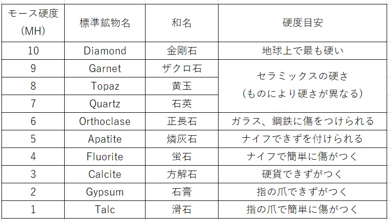 表1 モース硬度表