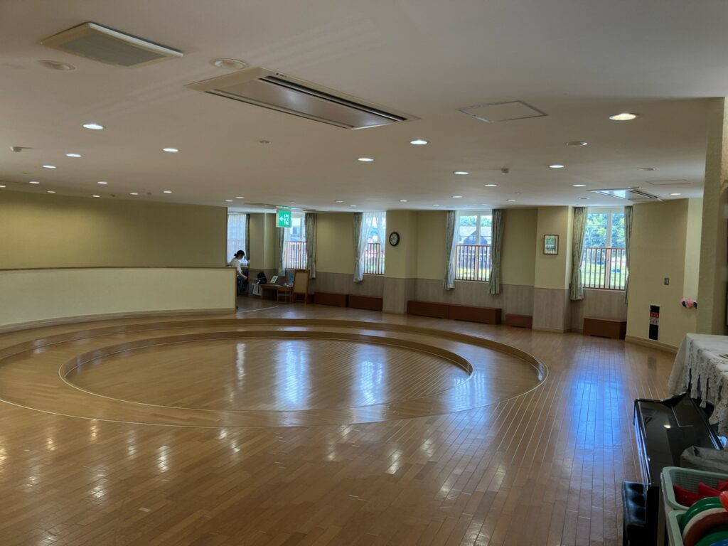 照明は従来の蛍光灯からダウンライトへ切り替え、昼寝時のまぶしさを抑えるなど住宅感覚のやさしい光に刷新。天井材にも木目柄を取り入れ、子どもが仰向けになったときの視界に想像力を広げる工夫を施した。