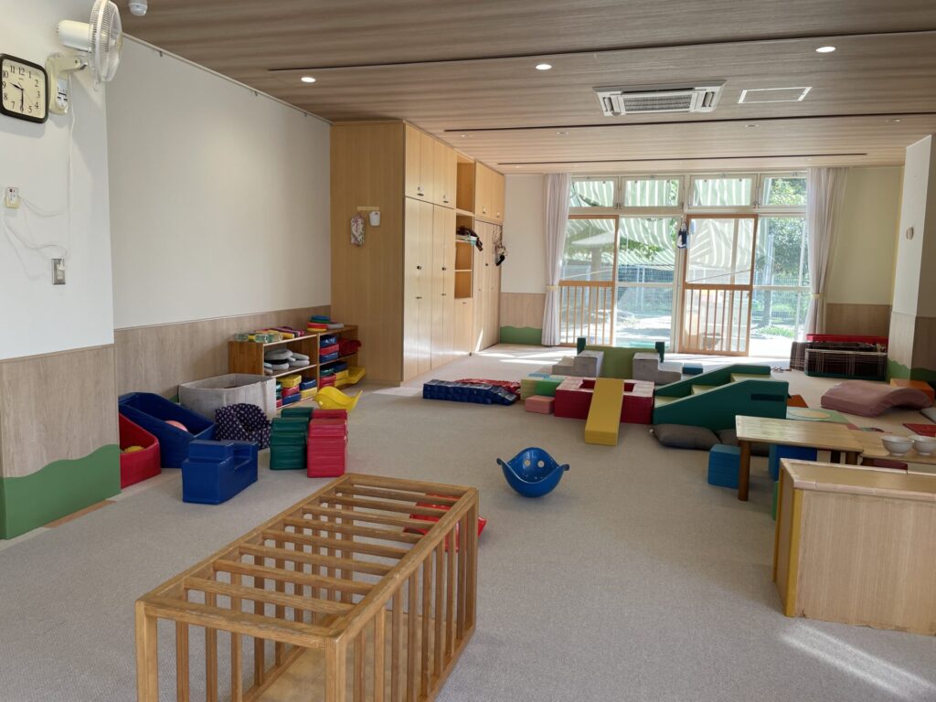 乳児室では大きな面は穏やかに、小物はカラフルに